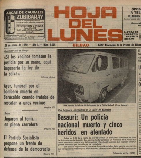 Atentado contra el bar Aldana en Alonsotegi el 20 de enero de 1980. Cuatro personas asesinadas: Liborio Arana Gómez, Pacífico Fika Zuloaga, María Paz Armiño y Manuel Santacoloma Velasco