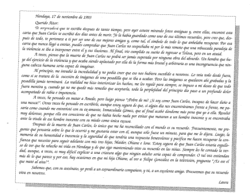 Laura no quiso dejar el nombre de Juan Carlos ni la flor que le correspondía por temor a que, luego, fuera pisoteada por los amigos de ETA.
