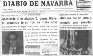 Me referiré en particular a uno de estos asesinatos: reúne todos los ingredientes que sazonan una crueldad ejercida a lo largo de los años contra una familia acorralada por matones de pueblo. Se asemeja a esas persecuciones sin miramientos que hemos visto en las películas del lejano oeste, y se ha producido con el visto bueno, cuando no con el apoyo explícito, de los gobernantes locales. Una persecución tuvo su punto culminante en el asesinato del padre, Jesus Ulayar (alcalde de Etxarri-Aranatz entre 1969 y 1975), pero que no acabó allí. El hostigamiento a la familia, terco en hechos, continuó durante varias décadas más, a la vista de todos. Aún continúa. Su hijo Salvador lo contó en un libro publicado en 2014: Morir para contarlo.