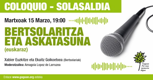 La asociación ‘Gogoan, por una memoria digna’ organizará el martes, 17 de mayo, un coloquio con el título «Lo que nunca debimos amparar. El final de un silencio» en la que intervendrá Jorge Giménez Bech (Irún, 1956).